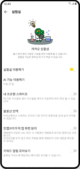 - 대화 백업: [설정 > 채팅 > 대화 백업]에서 대화를 클라우드에 저장.